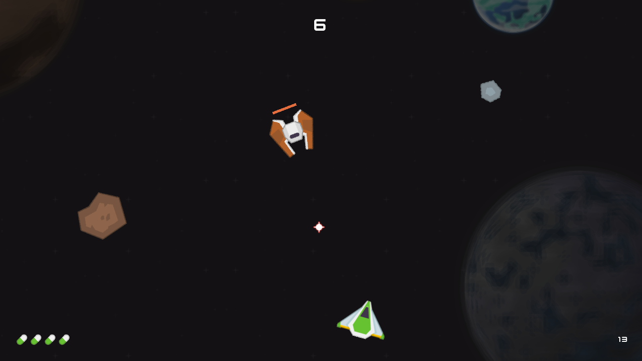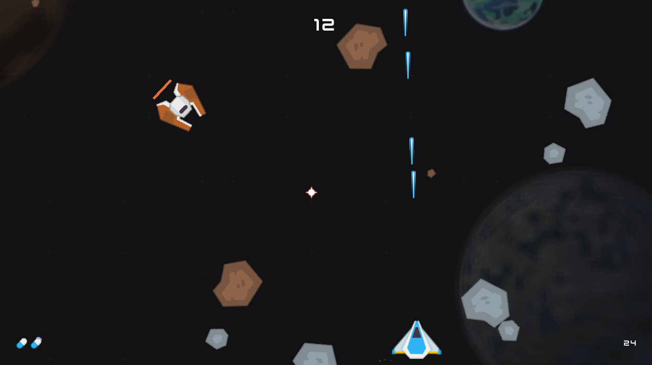 Zaperoids is a simple, casual 2D space shooter where you pilot a spaceship, zap incoming asteroids with lasers, and battle enemy ships that shoot back.